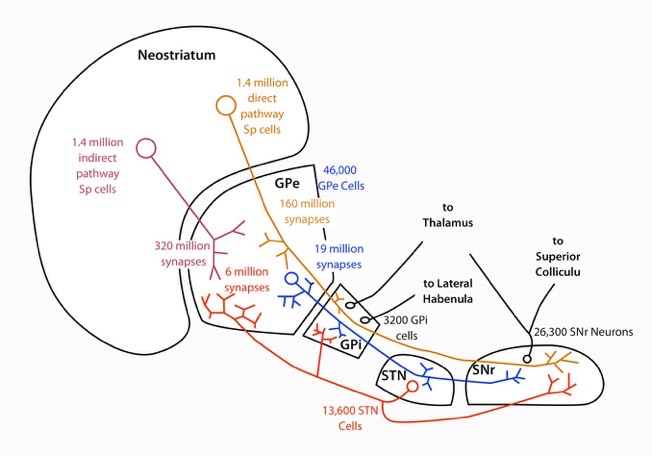 Figure 1. The connectivity of the basal ganglia in the rat.